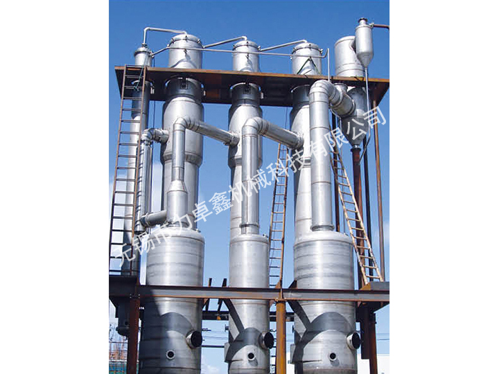 產品特點:降膜蒸發結晶器傳熱系數高,溫差小,真空蒸發。保證物料在換熱管內處于適宜的沸騰狀態,避免因劇烈氣化導致的干壁,結垢現象多效蒸發器
